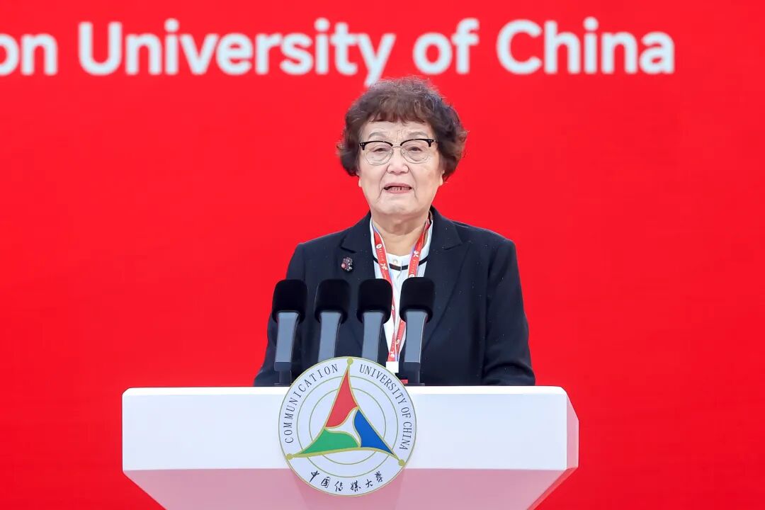 教师代表、原北京广播学院教授、首批博导曹璐在发言中深情回忆了和学校一起成长的岁月,她表示,作为中国传媒大学不同发展时期的亲历者、参与者、见证者,与学校和同学们共同成长,有感动,有感谢,有感恩。习近平总书记在重要回信中对中国传媒大学的未来发展提出了殷切希望,全体教职工、校友和在校生们无不欢欣鼓舞。站在新的历史起点,希望学校胸怀“国之大者”,深入贯彻落实习近平总书记重要回信精神,七十周年扬帆再启程,不断务实进取、开拓创新,为教育强国建设、民族复兴伟业作出更大贡献!