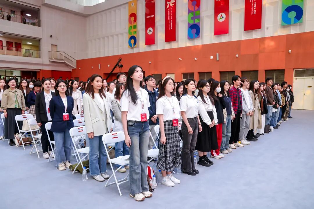 2024级本科新生代表全体中传师生向学校老领导及第一、第二批博导代表献花。会场全体起立,向中国传媒大学建设发展道路上的前辈和榜样致敬!这是青春的致敬,更是薪火的传承,年轻的白杨将接过使命与责任,在这片沃壤上茁壮成长。会场屏幕播放了联合国教科文组织前总干事伊琳娜·博科娃,国际奥委会主席托马斯·巴赫,世界大学校长联合会主席费尔南多·莱昂·加西亚以及来自英国牛津大学、曼彻斯特大学、美国伯克利音乐学院等62所国外高校和19个国际组织、媒体机构、企业的贺信与祝福视频。站在新的起点上,“以未来为向度,以世界为坐标”的中传,将以奋进之笔书写崭新篇章,胸怀天下,心系全球,与世界共鸣,与四海为友。