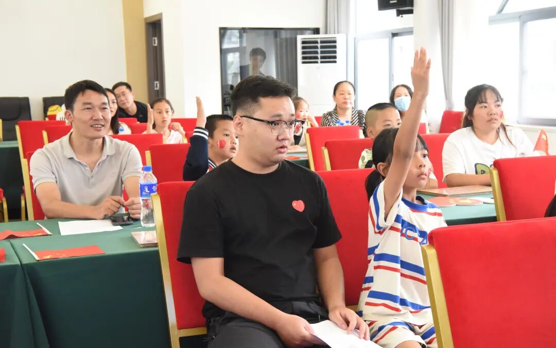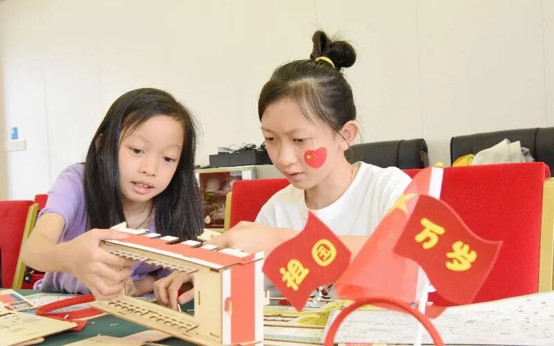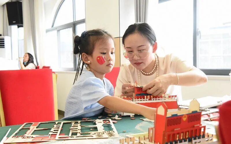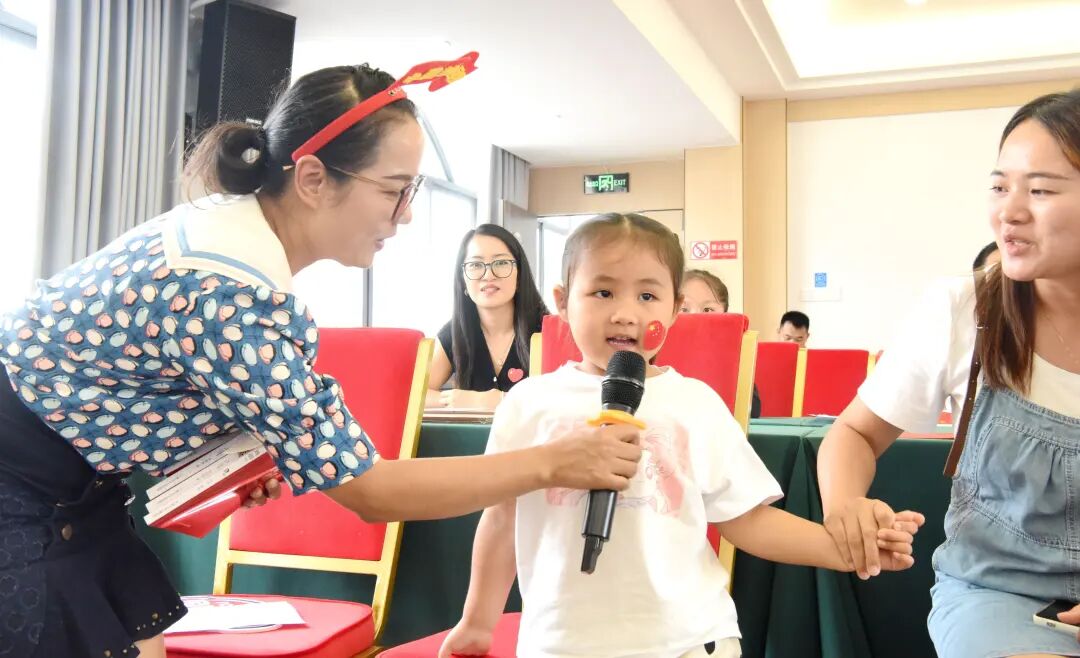 活动安排了“迎国庆 手势舞”“迎国庆 忆经典”“迎国庆 共奋进”等5项内容,内容覆盖面广,层层深入,环环相扣,多重打造职工与职工互动,家长与孩子共学的高效性、沉浸式“课堂”。通过诵读《祖国颂》以及用手势舞表演“我的名字叫中国”进一步活跃氛围,不断激发出浓浓的爱国热情和国家荣誉感;在小红军山娃的故事分享中感知英雄人物的坚定信仰和无畏牺牲的革命精神;在《永远的9岁》《如愿》等读书分享中,深情阐述了有一种爱国叫“与年龄无关”,有一种责任叫“国之不存,何以为家”,让家国情怀厚植于心、融入日常;在情景体验“迎国庆 创未来”中,父母与孩子们利用天安门城楼手工材料共同拼接出精美的手工作品,以此表达着对党和国家的美好祝福,在一面面鲜艳的五星红旗衬托下,书香之气与爱国之情相互交融,氛围感满满。活动还开展了国防教育知识竞答,持续激发国防教育学习热情,提高职工家庭阅读兴趣,让红色精神引领职工成长。