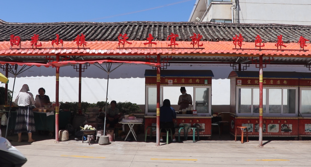 活动内容:在芳源里餐厅附近,主要售卖商品有面部彩绘、漆扇、彝族刺绣、苴却砚、毛线花、麦芽糖等产品。