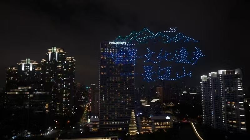 为更好地预热此次活动,凸显普洱元素,展示普洱茶咖文化魅力,9月29日晚,上海黄浦外滩区域数百架无人机腾空而起,以光影为笔,精心勾勒出“绝版普洱·香遇世界”“世界遗产—景迈山”“千年茶韵·一城咖香”等普洱标志性元素,给现场观众带来视觉与科技的双重震撼,提前点燃节日的喜庆氛围。9月30日,来自景谷的18名演员在昆明长水机场航站楼一展歌喉,唱响《歌唱祖国》,通过《想那个地方》深情诉说对家乡的眷念,展现出普洱人民对伟大祖国的热爱之情,以及对家乡文化坚定不移的传承与坚守精神。