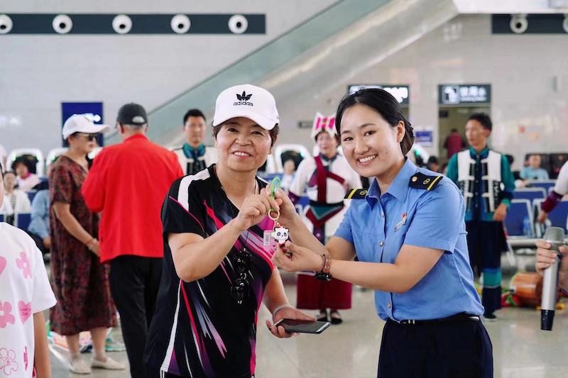 针对国庆期间客流旺盛的情况,国铁昆明局在“金花”“阿诗玛”“红石榴”服务台开展喜迎中秋国庆志愿服务活动,免费提供茶水、加固打包行李、发放小礼品、提供集章打卡等服务,让旅客出行之路更温馨。列车上以“迎国庆、庆华诞”为主题的装饰,格外引人注目。身穿特色民族服饰在车厢里载歌载舞,与旅客热情互动,车外自然风光宜人,车内民族风情浓郁,让旅客感受到旅途的温馨与舒适。