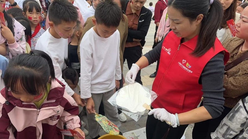 (昭通彝良县 云南文旅志愿者指导游客制作漆扇)