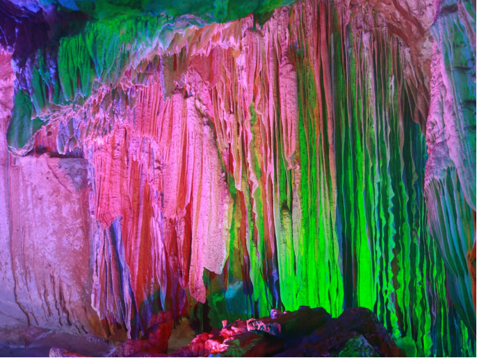 清凉洞为喀斯特地貌溶洞,洞的四周峰峦叠翠,森林茂密,果树成林。走进溶洞,一股凉意袭来,山石间五彩斑斓的迷幻灯使清凉洞神秘富有诗意。清凉洞如同一条蜿蜒盘旋的巨龙,龙鳞层层叠叠,片片清晰,令人遐想。洞顶、洞壁万千钟乳垂挂,或纤巧精细、或重叠交错,在彩灯的辉映下,五彩缤纷,似雕如塑,十分美丽,让人尽情领略大自然的鬼斧神工。