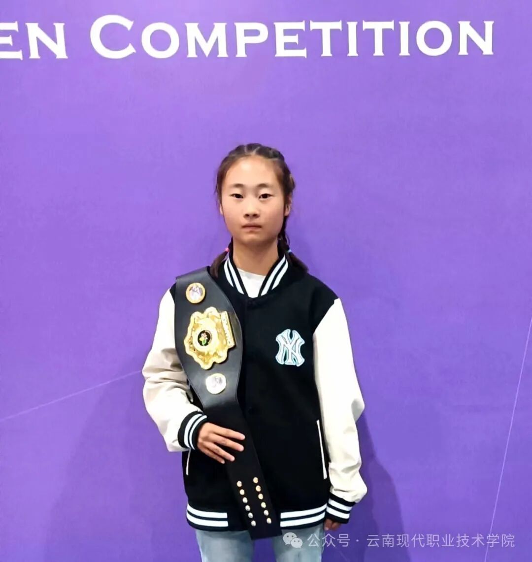在刚刚结束的“云南省第二届青少年自由搏击锦标赛”中,楚雄技师学院武术散打队员韩佳静过关斩将、雷霆万钧、擂台称霸,获女子乙组44kg金腰带,创造该项目楚雄州女子自由搏击历史记录并获得参加全国自由搏击总决赛资格。