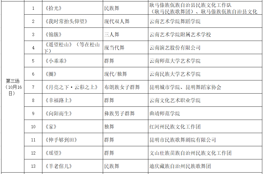 第三届云南舞蹈原创展演活动将持续至10月17日,红河大剧院面向广大热爱舞蹈的业内外人士,以惠民票价开票,欢迎市民线下购票观看展演,一起欣赏这场属于云南的舞蹈盛宴。
