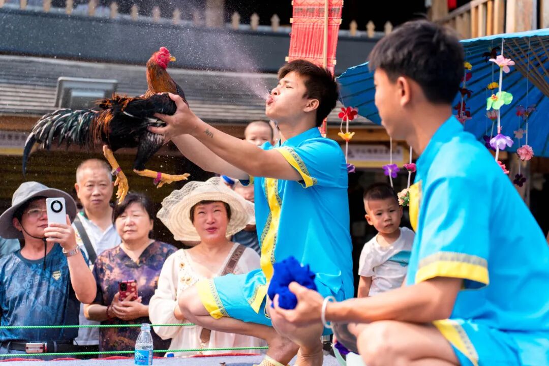 3.斗鸡表演、民俗婚礼展示:每天10:30、14:30开展的斗鸡表演,是傣家人休闲娱乐生活的一种体现。此外,11:30—12:00在竹楼前举行的民俗婚礼展示,则可以通过“新人”傣式婚礼,了解傣族婚嫁的民俗。