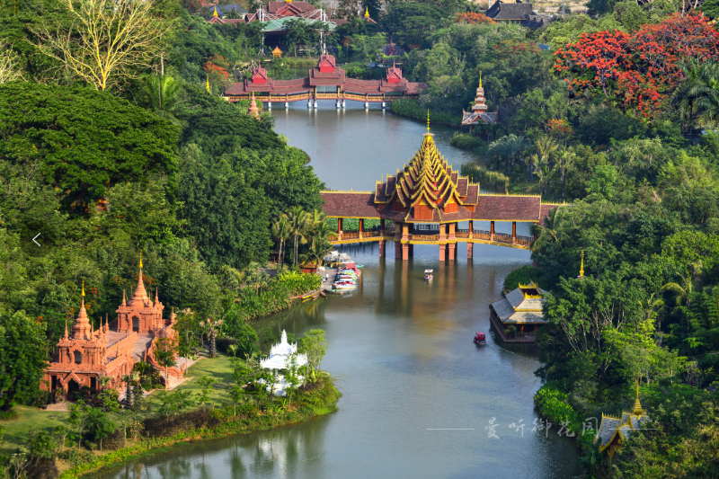 曼听御花园的前身是傣王御花园,传承了1300多年的傣族历史文化,傣族人民称它为“春欢召帕莎”(音译),西双版纳傣文化的灵魂之园。红墙金顶的建筑成为景区内一道亮丽的风景线,其中延续了傣族建筑经典,极具特色的傣王行宫、章哈亭、城心塔、八角廊桥等建筑和民族文化广场、御花园文化区、民俗文化区、铁刀木林区等主题区域成为游客必去的打卡点。