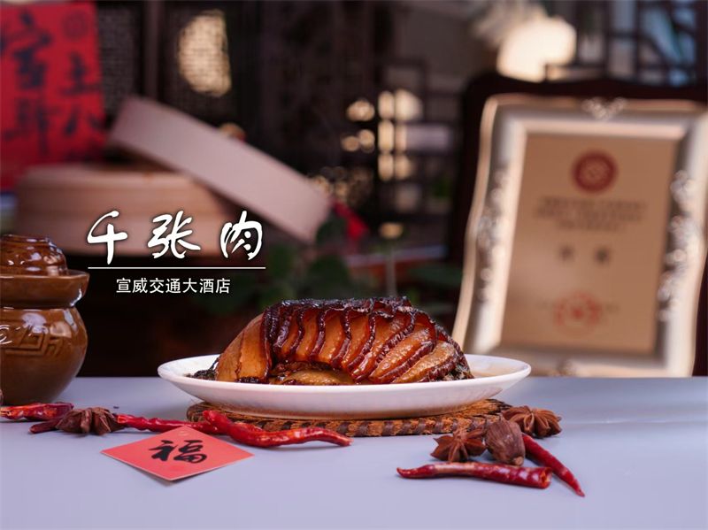 入口即化“千张肉”:这可是宣威交通大酒店一绝!肥瘦适中的带皮五花肉,经过数道加工,肉皮呈现出诱人的红棕色,色泽油亮,宛如焦糖色的宝石,散发着迷人的光泽。肥瘦相间的肉片层次分明,肥肉部分晶莹剔透,宛如白玉,瘦肉部分则呈现出深红褐色,纹理清晰。自制酸腌菜吸走了肥肉的油腻,每一片都入口即化,如丝般柔滑,肥而不腻,百吃不厌!