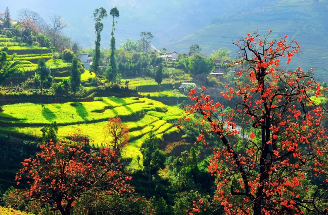 初冬的云县涌宝镇石头寨,枝头的柿子在晨间云雾中若隐若现。站在树下,便可感触一种暗香,似在滤过的光线中,在不同的枝头间,盈盈浮动,黄澄澄的柿子挂在枝头上,迎风摇曳与远处墨绿的群山、蓝天白云勾勒出一幅动人的冬日画卷。