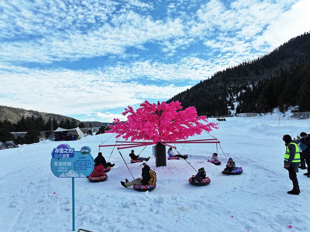 普达措景区的冰雪之约项目,预计将于11月底正式开启,主要体验项目包括雪圈冲浪、雪地悠波球、雪地转转、雪橇板滑道、冰雪两用车,还有免费体验项目儿童乐园区、堆雪人区、冰雪人(雪人模具)打卡区、冰雪展翅打卡点、冰雪灯箱等。在这里,不仅为游客准备了一场独一无二的冰雪体验,同时也将环保理念贯穿每一个细节,让游客在探索这片神奇土地的同时,切身感受到自然保护的重要性。