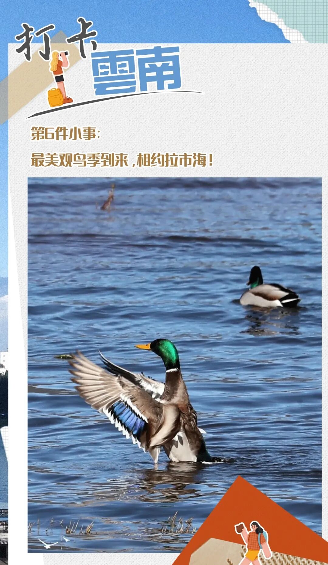 丽江拉市海是国际九大候鸟迁徙路线的一部分,也是我国三大候鸟迁徙线西线的一个中转点,每年都会有大量的候鸟途经拉市海,并选择在此越冬。到拉市海栖息的候鸟族群大部分集中在湿地公园、打渔村、候鸟湾等地,区域内也设置了环湖栈道和特定的观鸟地点,可满足市民游客的游览需求。