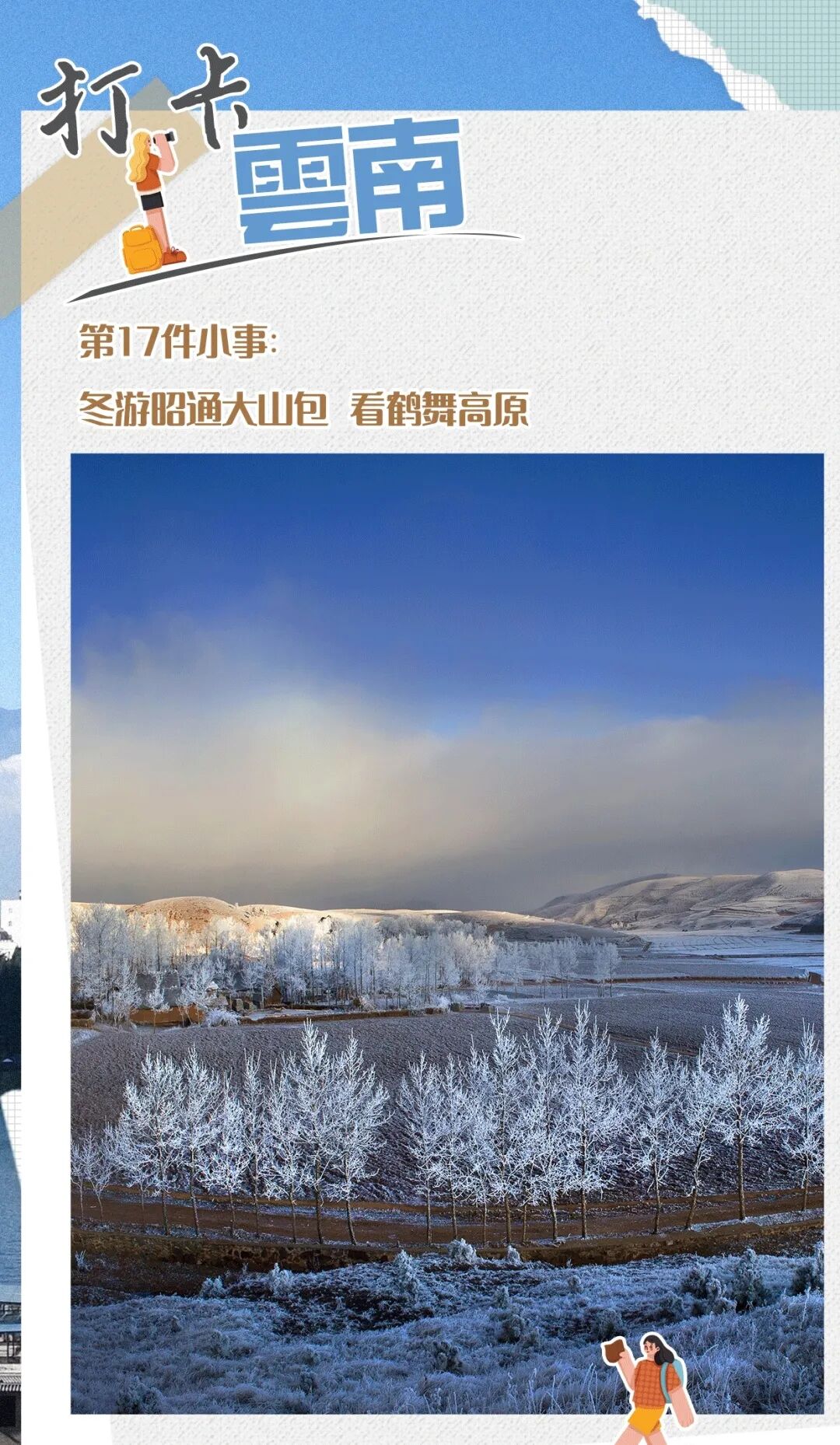 冬季走进大山包,万亩草场绵延辽阔,月色三分柔情,雪也温柔弥漫,黑颈鹤翩翩起舞于蓝天碧水之上,惊艳于天地之间。游客们常常可以近距离地观赏到这些珍稀鸟类优雅机敏的身姿,与“高原精灵”共赴一场生态之约。
