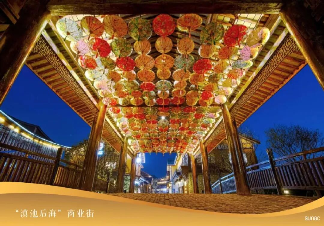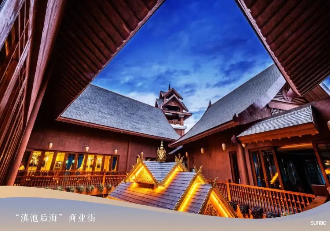 除了两大乐园外,融创文旅城的滇池后海也值得一玩。这条滨河的商业街,融入白族、苗族、纳西族等民族的文化元素,打造了五桥六院七广场的特色建筑群落。游客可以在这里品尝云南特色小吃,购买民族手工艺品,感受浓厚的文化氛围。