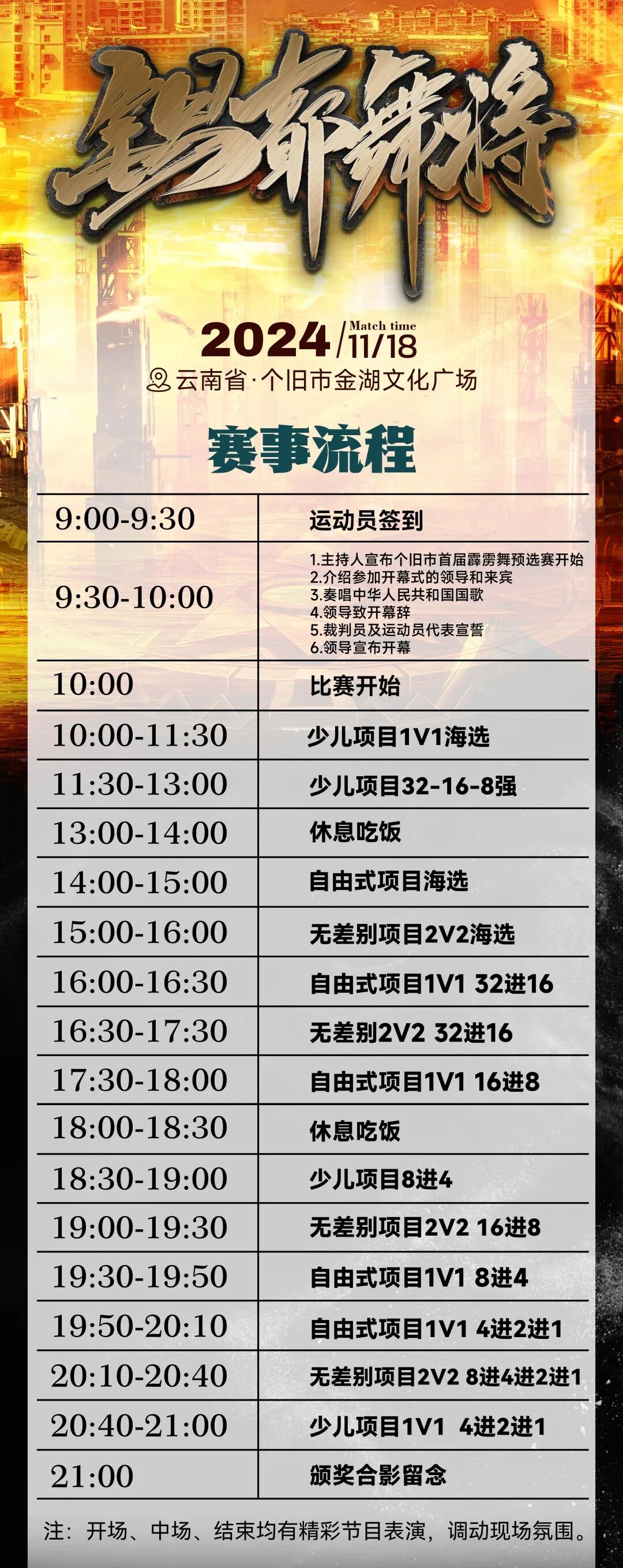 活动内容:闭幕(颁奖)仪式(20:00—20:40),无人机表演(20:40—21:00)