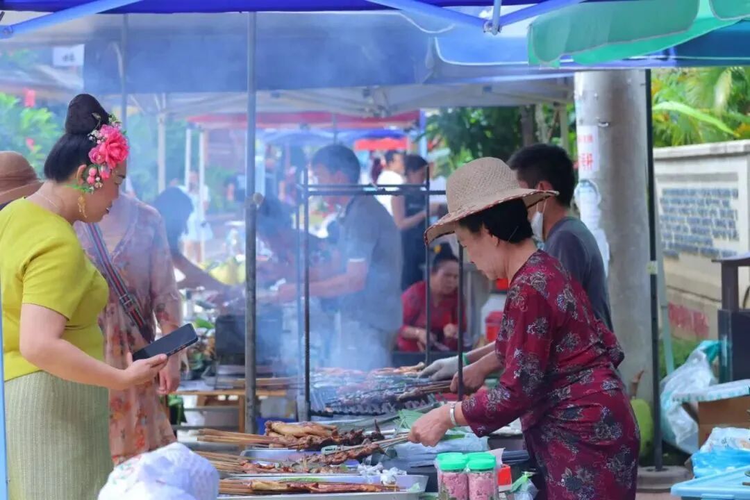 曼贺纳居民小组是景洪市较为古老的傣族村寨之一,村寨内保留着较为完好的傣族干栏式建筑和文化习俗。活动期间,曼贺纳古寨的民族特色赶摆中,大家可以品尝到菠萝饭、烤鸡、烤鱼等当地的特色美食,还能购买傣家人手工制作的民族服饰、手工艺品等,让你在“逛吃逛吃”之间,感受浓郁的民族风情。