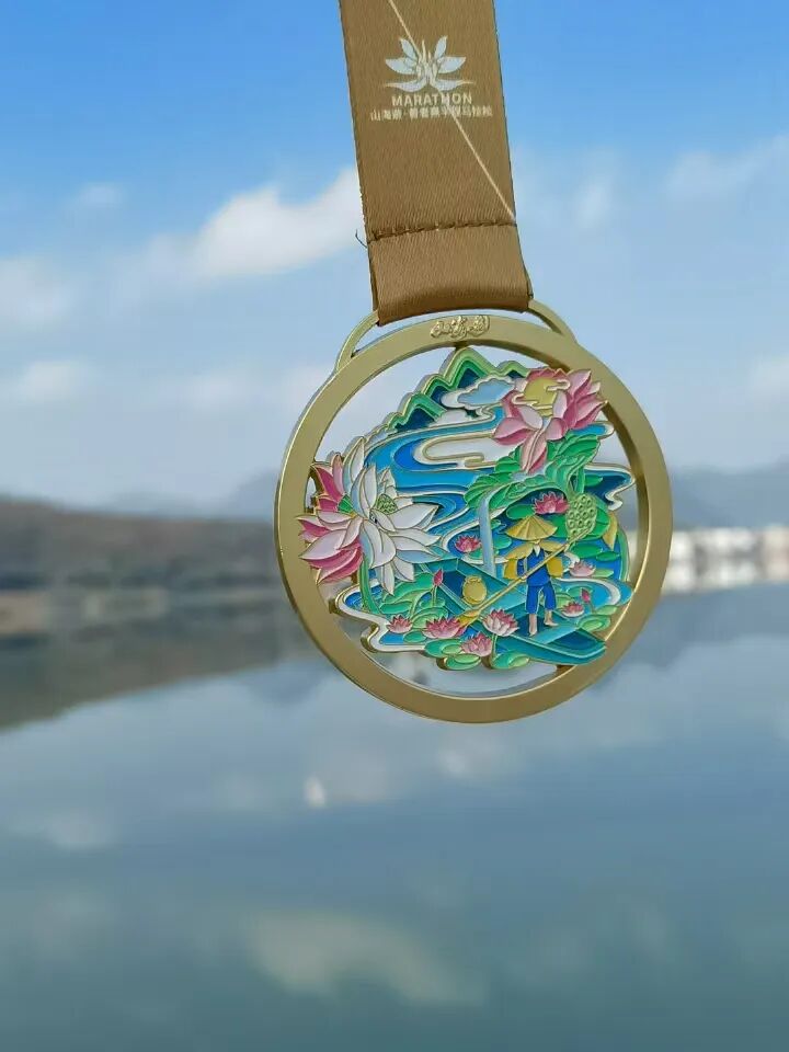 本届赛事奖牌设计以普者黑荷花世界为核心主题,整体设计旨在通过普者黑的特色元素,将普者黑荷花世界的旖旎风光与和谐生态融入奖牌中,传递了对普者黑独特景观及人景相融景象的赞美与铭记。