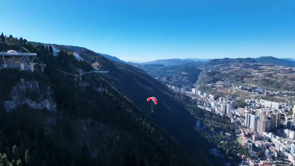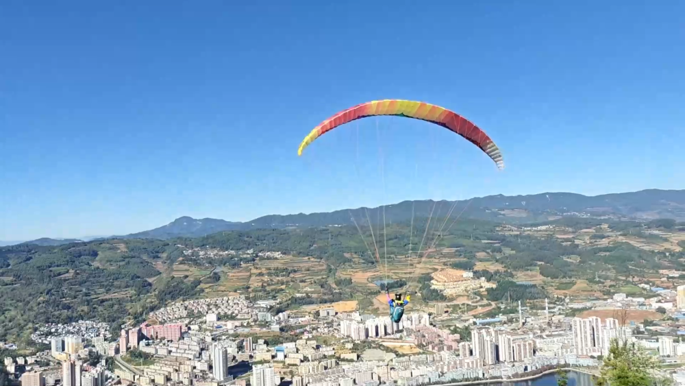 个旧市被群山环抱,城区地势较低,是少有的能在城市上空进行滑翔飞行的城市,因此吸引了越来越多的滑翔伞爱好者前来体验。
