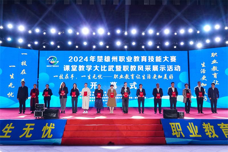 11月19日晚,以“创新引领未来 技能成就梦想”为主题的2024年楚雄州职业教育技能大赛课堂教学大比武暨职教风采展示活动开幕式在美丽的桃源湖畔举行。楚雄州人民政府、州产教联合体、州教育体育局等单位联合主办,楚雄医药高等专科学校、楚雄技师学院、云南现代职业技术学院、楚雄市职业高级中学等多家单位共同协办。