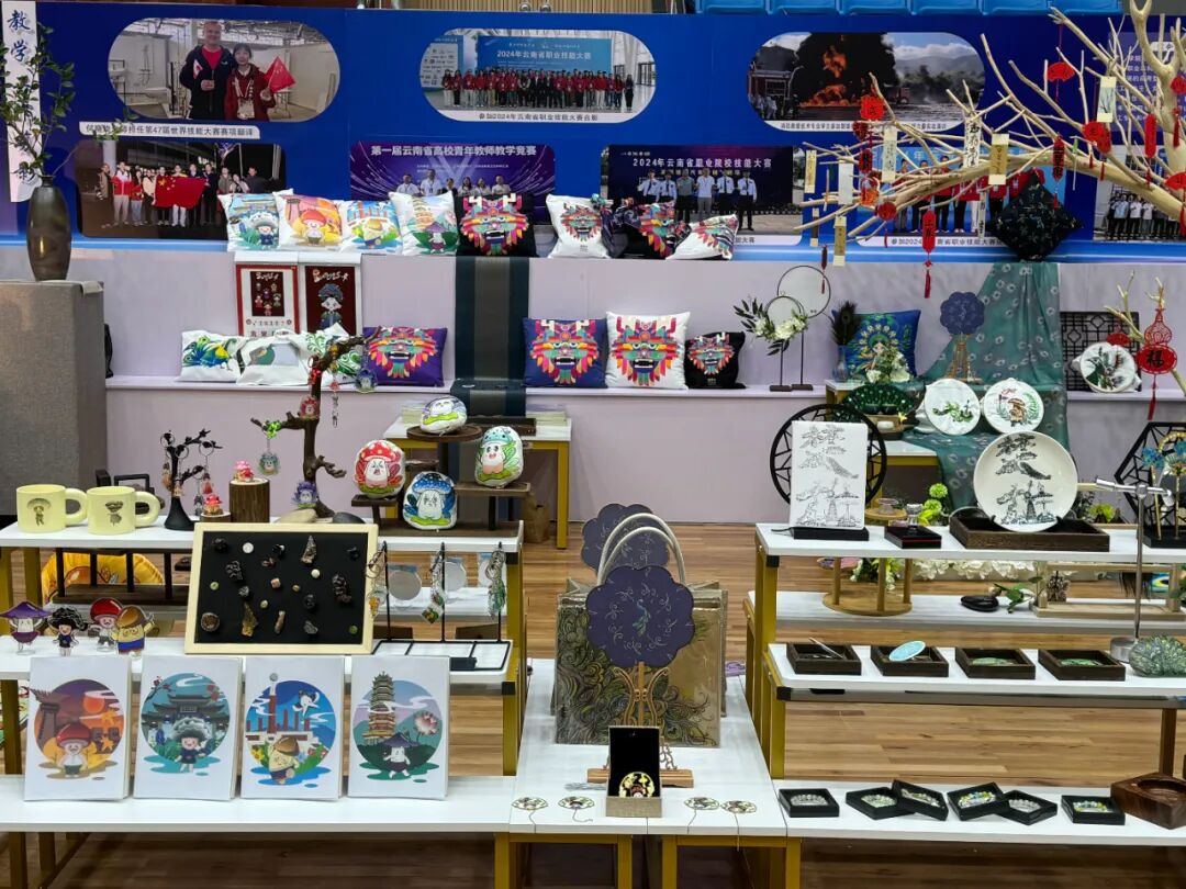楚雄技师学院 云南现代职业技术学院展区布置主要围绕楚雄州教育体育局评定的四个州级大师工作室、骨干专业、特色专业进行展示,包括智能制造、非遗现场体验、艺术文创设计、陶艺及艺术装置陈设、校企合作产品等。全面展示学院在产教融合、专业建设、人才培养、服务社会等方面的成果。