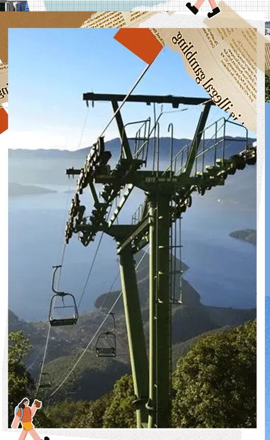 乘索道进山,可一睹山川湖海的秀丽多姿。上行途中徐徐进入原始森林,体味森林的静美,观赏野生猕猴、锦鸡、松鼠等野生动物;下行途中面朝泸沽湖,置身于移动观景平台,俯瞰绝美泸沽湖全景。