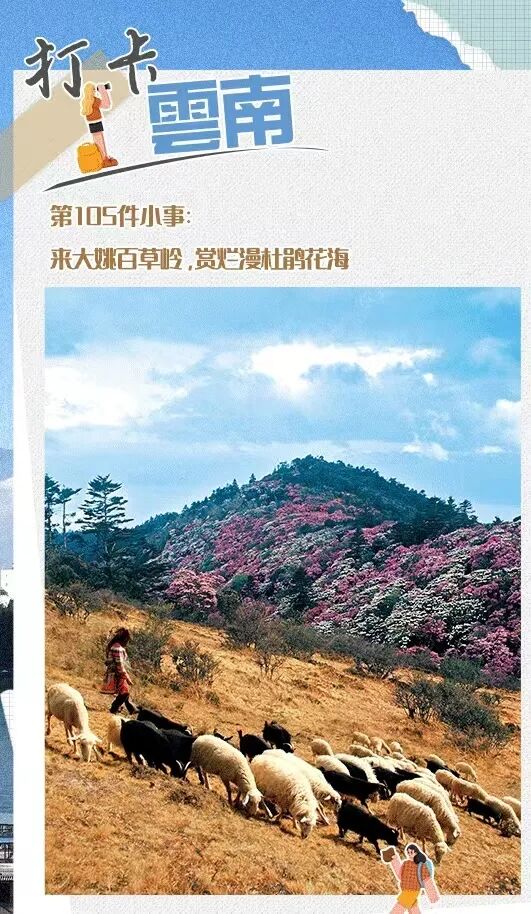 春末夏初,楚雄州大姚县百草岭,连片的杜鹃花盛放,绚烂花海形成一幅气势恢宏的画卷,在崇山峻岭间绵延百里,十分壮观。这里的杜鹃花种类繁多,红的、粉的、紫的、黄的、白的各色花儿,争奇斗艳,像鲜红亮丽的云霞一般,把百草岭簇拥成五彩缤纷的花岭,漫步山间小径,人在花中行,画由景中生,无不让人心旷神怡。
