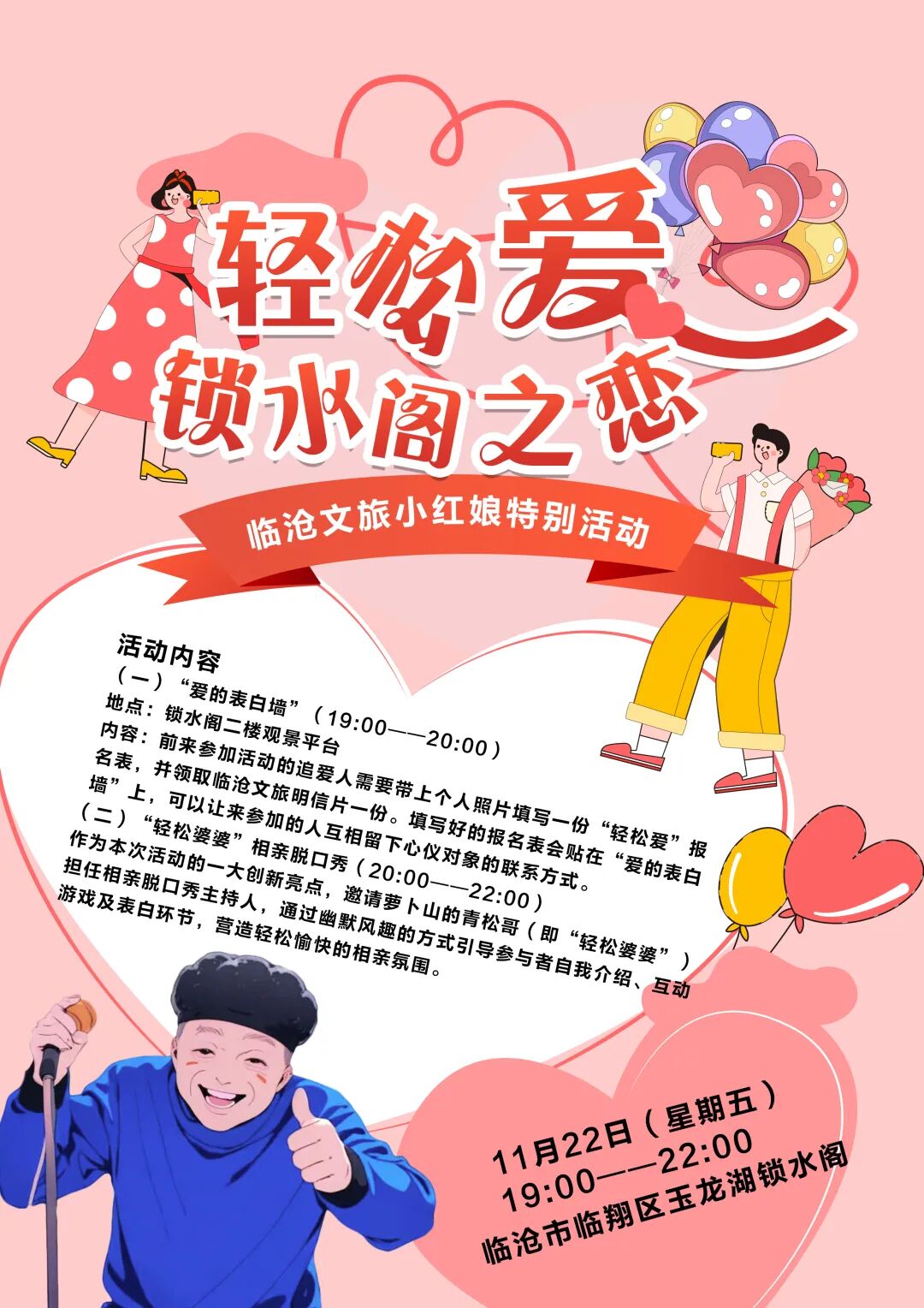 为提升市民及游客的幸福感,同时解决单身青年的婚恋问题,临沧市文化和旅游局特别策划了“轻松爱”惠民相亲大派对!