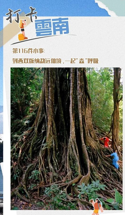 到勐远仙境,游客可以在专业讲解员的带领下,走进雨林深处,感受大自然的野性,发现难得一见的板根、绞杀、寄生附生等雨林奇观。此外,还可以进入被称作“负氧离子天然浴场”的宝角牛洞中探险,洞内全年恒温,夏无酷热、冬无严寒,是天然的自然疗愈场,经过千百万年的演化,洞中形成了各式各样的石钟乳、石笋、石柱,造型千奇百怪。