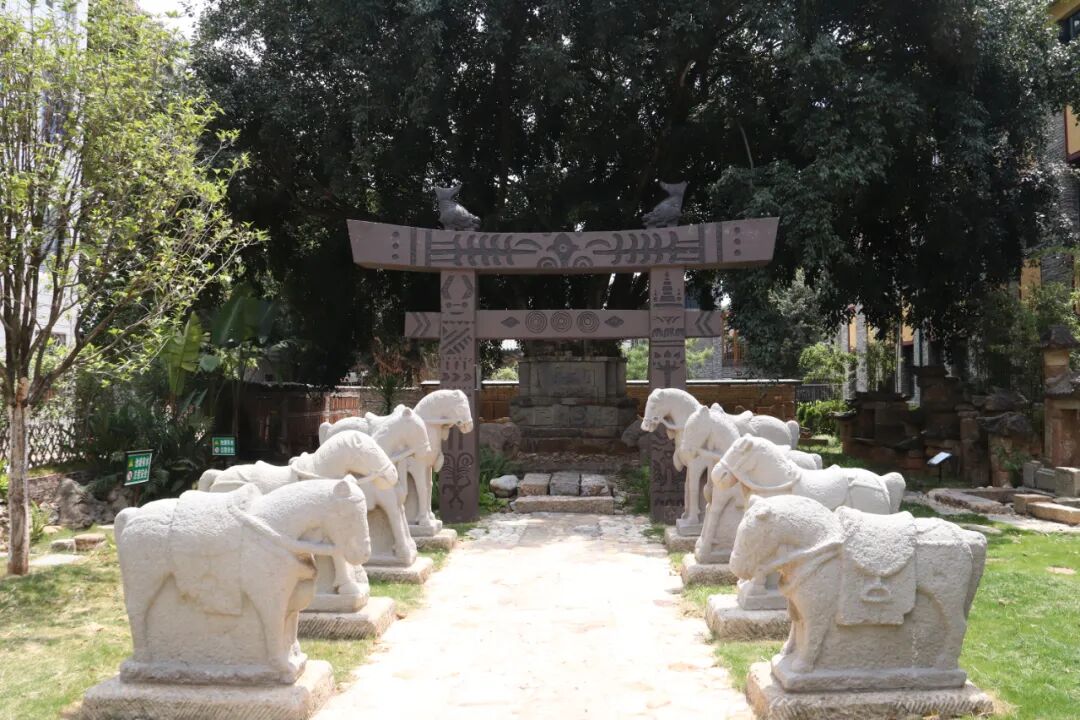 临沧专员公署旧址室外展区布局按游人的行走路线“编排”,务实移步换景,不使一览无余。主线是按中国山水画中的“平远”布局蜿蜒至深处,路径蜿蜒,坎坷不平,路旁两列石马布阵,喻示当年茶马古道的艰辛。