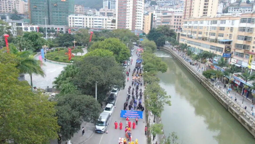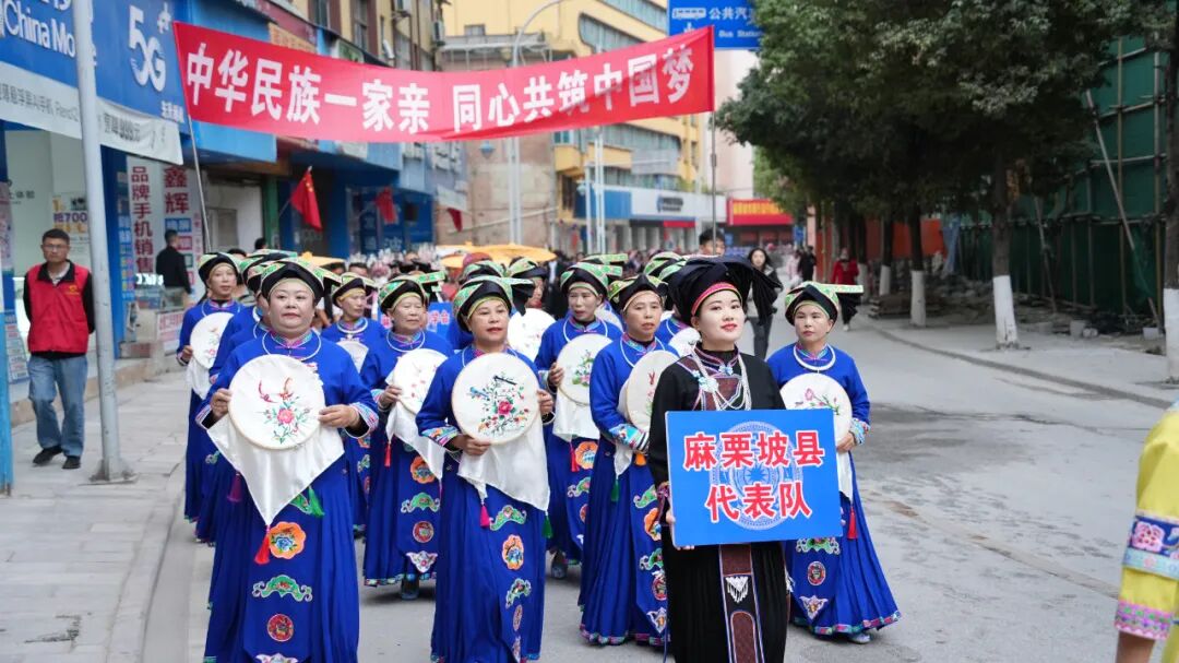 当日,来自文山州8县(市)的29支巡演队伍浩浩荡荡从麻栗坡县紫金广场出发,沿着河滨路、玉尔贝路行至县一小,最终返回大王岩广场。一路载歌载舞,唢呐铜鼓响彻街头巷尾,所到之处两旁都站满了围观人群。壮族的手巾舞、弄娅歪,苗族的精美服饰、彝族的弦子舞、瑶族的邦鼓舞……集中体现了多姿多彩的民族文化,多元文化的碰撞与交融更展现了各族群众亲如一家、共享盛世的美好图景。