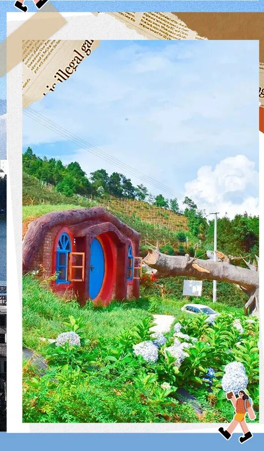 一座座木屋掩映在鲜花和绿树之间,静谧美好的像是只有童话里的精灵才会居住的房子。湖泊里游荡的白鹅跟云朵一样悠闲,阳光穿过草隙,温柔的画面治愈了久居樊笼的心灵。