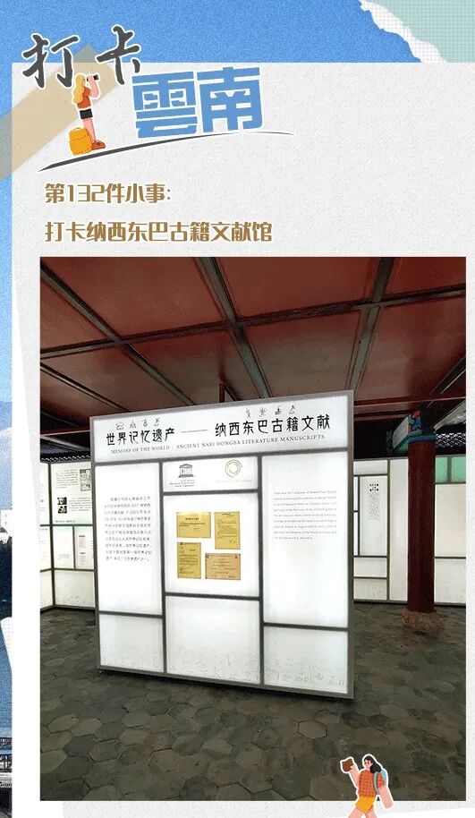 纳西东巴古籍文献馆于2022年3月开馆,展馆分为光碧楼(记忆遗产馆)和天雨楼(古籍文献馆)两部分,以《纳西东巴古籍文献》为主要内容,采用图文、实物、绘画、动漫、音像等方式,在丰富展示内容趣味性和互动性的同时,将展、学、研、教、游融为一体,建成了一个了解东巴文化不可或缺的人文景点,以及树立民族文化自信、传播优秀传统文化的窗口,深度诠释东巴文化、挖掘东巴古籍内涵,并集收藏、研究、展示和体验为一体的文化空间,充分体现了学术权威性、传播数字化、参与性强的特点。