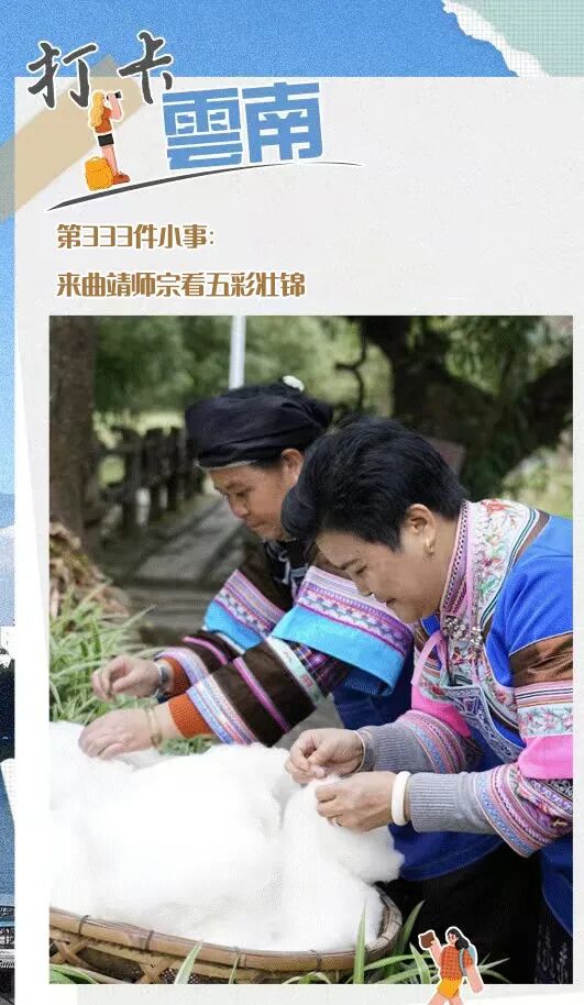 壮锦与云锦、蜀锦、宋锦并称中国四大名锦,北宋皇佑年间,桂西壮族首领侬智高兵败后率余部退入云南,其中一支辗转定居在曲靖市师宗县境内,壮锦技艺随之流传到这里。如今,师宗壮族妇女善织壮锦,织就美丽壮乡,当地也有了“男勤耕作女勤织,鸡犬桑麻乐有年”的谚语。2022年12月,师宗壮族织锦入选云南省第五批省级非物质文化遗产代表性项目名录扩展项目名录。