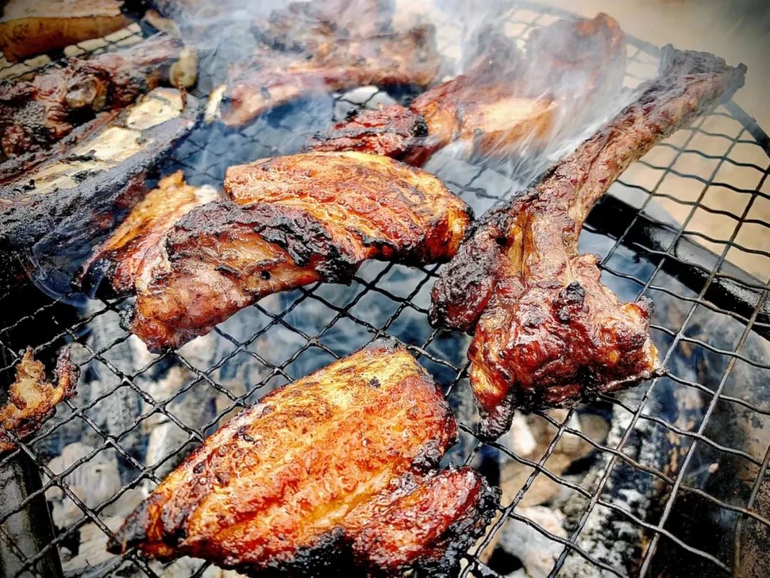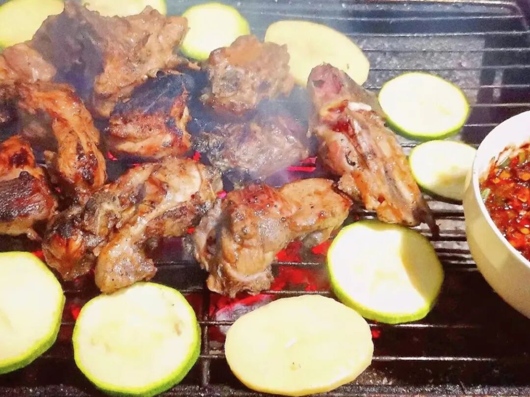 红红的碳火瞬间锁住了肉片的水分
