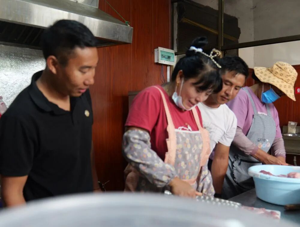 女人们拧着砧板菜刀帮忙烹饪