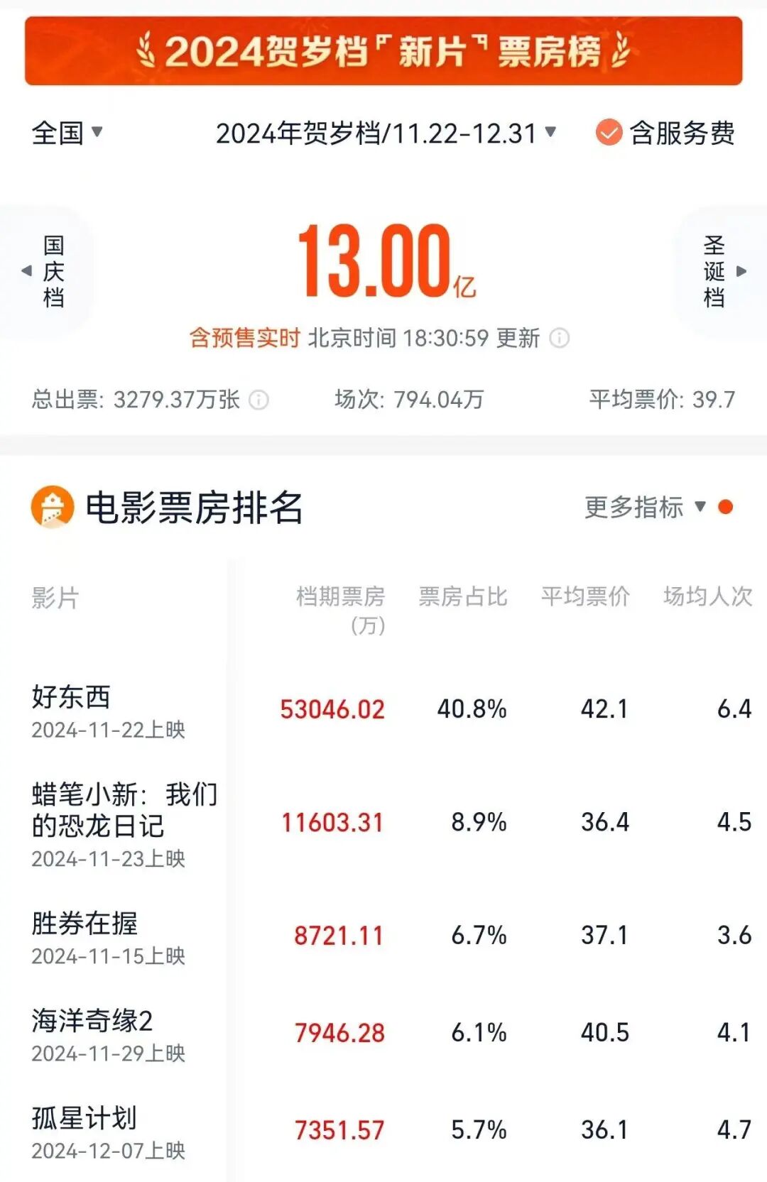 今年贺岁档在11月下旬已拉开序幕,喜剧、动画、音乐等多元类型影片纷至沓来。截至12月10日,2024年贺岁档档期票房(含预售)已突破13亿元。12月,还有超35部电影将上映。
