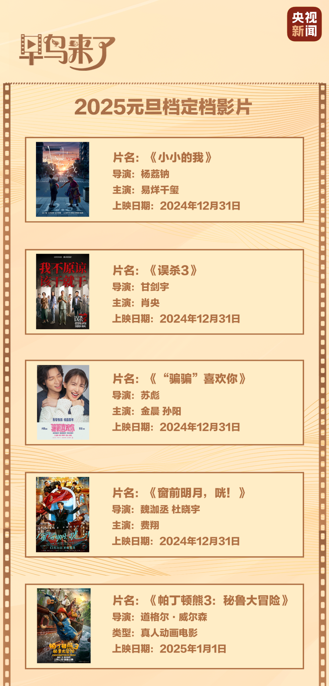 即将到来的2025年元旦档,更是精彩纷呈。元旦档承上启下,虽时长较短,却以精巧影片吸引观众,目前已有多部佳作定档。
