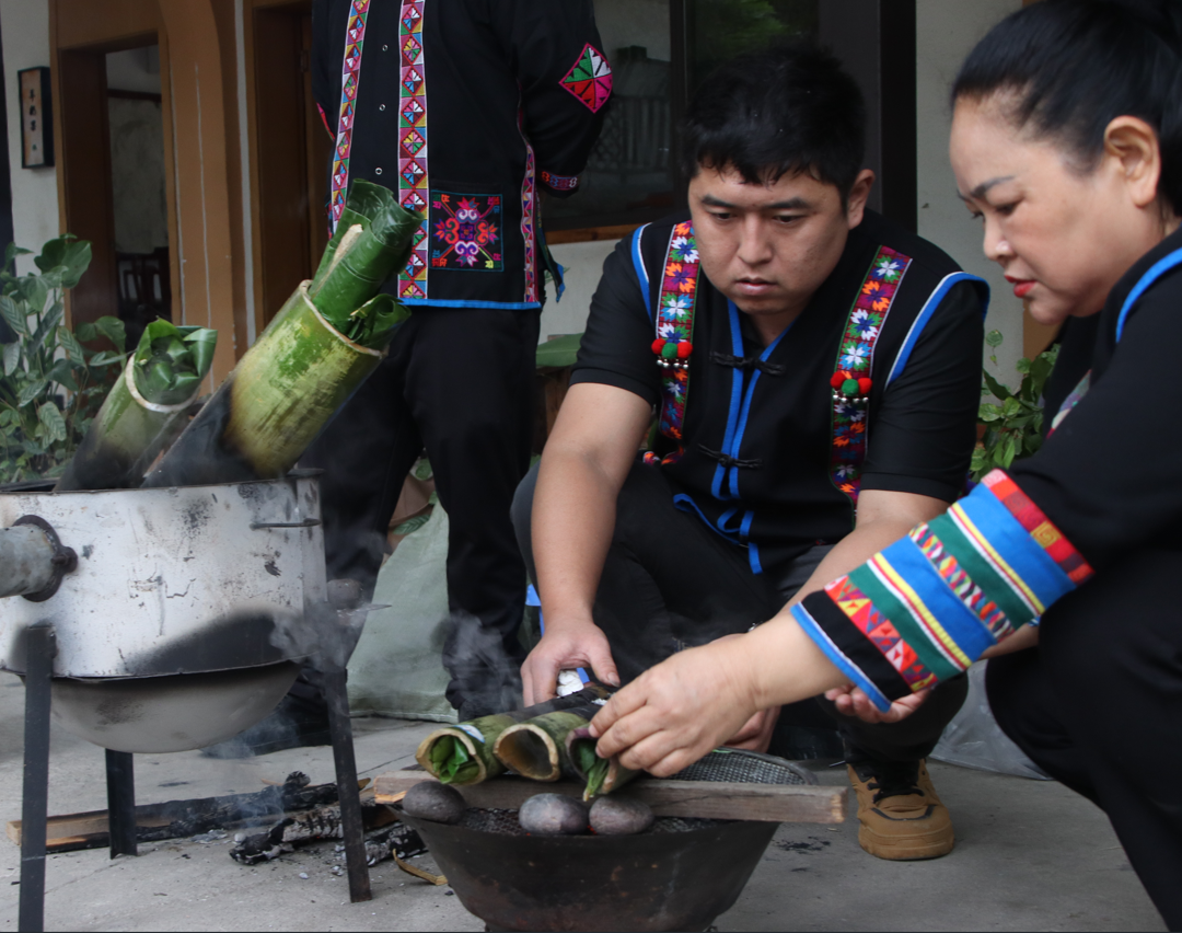 竹筒宴不仅是一场味觉的盛宴,更是一种与自然亲密接触的体验。阿卡石头汤、三色竹筒饭、竹筒煮鸡、凉拌竹虫等通过竹筒烹制,以竹为主题制作的菜品都展现着哈尼族独特的饮食文化,其“鲜、香”滋味让食客实现心灵和味蕾双重满足的同时,也传递了哈尼族对大自然的敬畏与热爱。