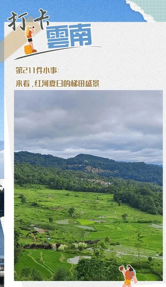 夏日的红河哈尼梯田,满目苍翠,稻浪滚滚,满眼碧波荡漾。置身梯田,嫩绿的稻苗和阡陌纵横的梯田相辅相成,伴着山间的清风,一起摇曳。