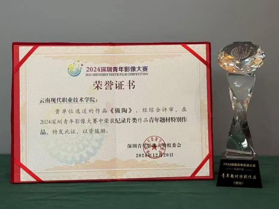 在刚刚闭幕的2024深圳青年影像大赛中,云南现代职业技术学院选送的纪录片《做陶》荣获纪录片类“青年题材特别作品奖”。本届大赛共征集全国各地713部作品,涵盖纪录片、剧情片和动画片三大类。