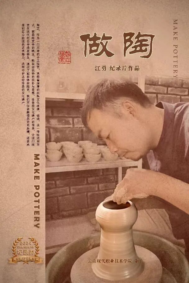纪录片《做陶》由云南现代职业技术学院文化旅游学院(亚威国际电影学院)教师江勇带领师生主创团队,在李亚威的指导下,辗转楚雄州各县市,历经3年多时间拍摄并制作完成。该片以学院青年教师李航为题材,通过生动的镜头展现了他在陶艺创作过程中的坚持与探索和对传统文化的传承。