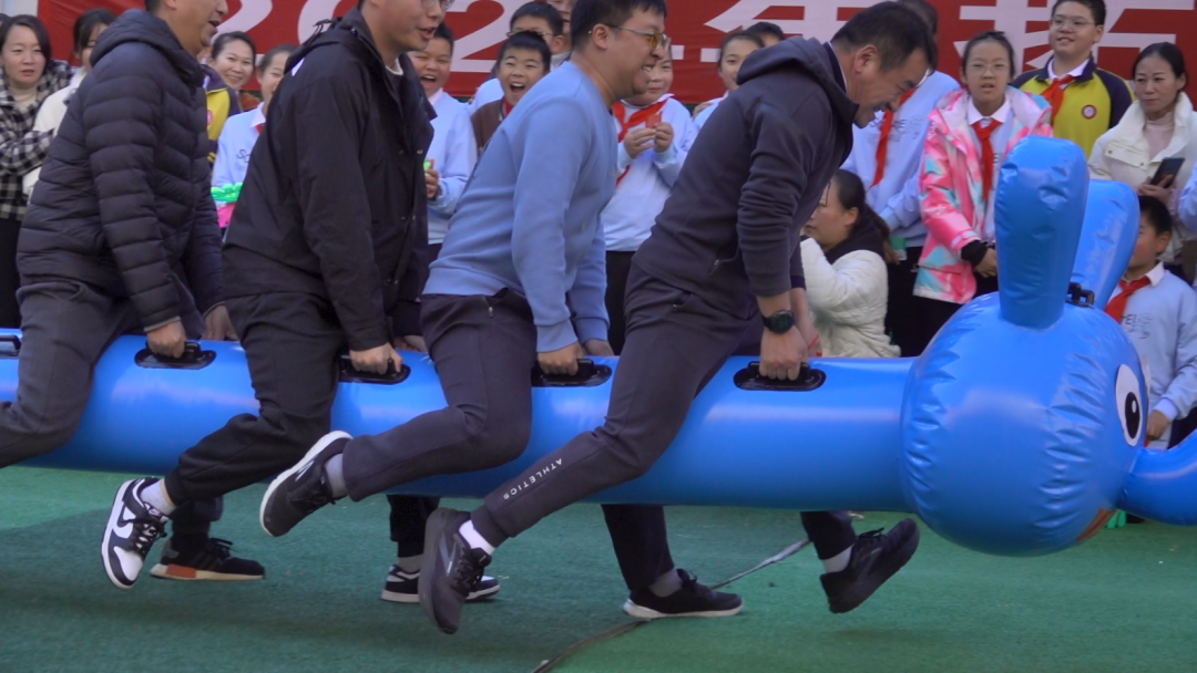 之后,教师团队带来了趣味竞技。同学们和家长们见证了老师们灵活地在赛场上穿梭。老师们不负众望,在这场趣味竞技中,坚定地向胜利进发。