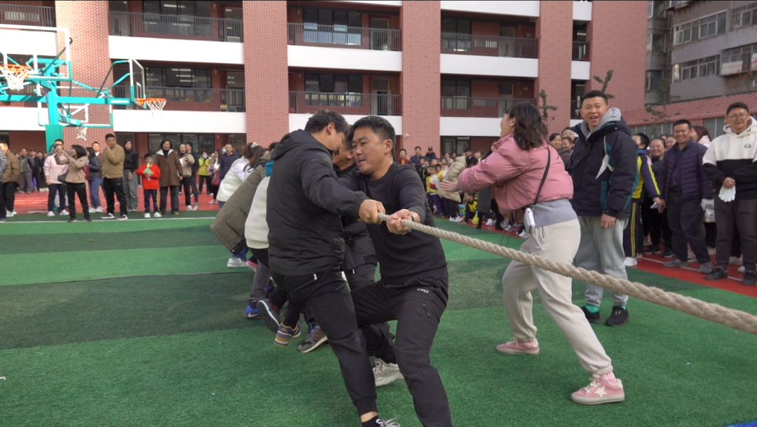 在这场力量与意志的较量中,家长队伍如同战场上的勇士,紧握着胜利的绳索。他们眼神坚定,肌肉紧绷,每一次的拉扯都是对极限的挑战。同学们的欢呼声、加油声如同战鼓,激励着每一位家长队员。这是一场不仅仅是肉体上的对抗,更是团队精神的展现。