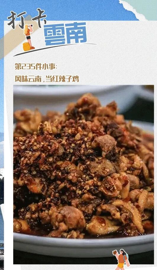 在云南,凡到沾益者,必定要吃上一回当地正宗的辣子鸡,新鲜出炉的辣子鸡色泽棕红油亮,入口麻辣味浓,咸鲜醇香,略带回甜,口齿生津,是一道名副其实的“下饭神器”。