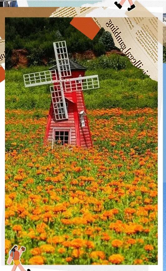 秋日的阿呀噜田园农庄万寿菊开满乡间田野,鲜艳的橘黄与嫩绿的草地、湛蓝的天空一同构成了梵高的调色板。在这一片金黄的花海里,阿呀噜田园农庄与周边自然风光相互映衬,显得古朴安静。