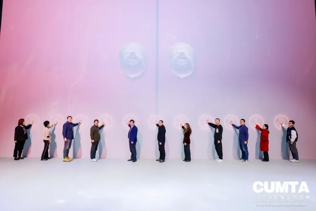 12月27日,主题为“文旅融合·传播创新”的CUMTA 2024年度文旅盛典在杭州举行,来自国内各省(自治区、直辖市)的主流媒体和报业协会、旅游协会代表,以及文旅企业代表、行业专家学者齐聚杭州M511光影汇的深空未来8K沉浸体验探索空间,探讨文旅深度融合的新机遇,洞见文旅传播的新“风口”。