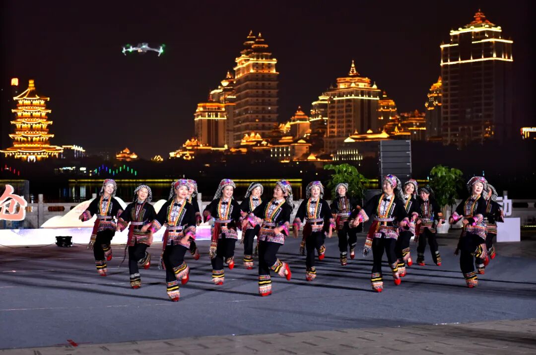 而来自耿马县的代表队则带来了一场充满异域风情的舞蹈盛宴。他们身着华丽的民族服饰,手持各种乐器,一边跳舞一边演奏。他们的舞蹈动作流畅而富有节奏感,仿佛将耿马县的独特文化、风土人情都融入了其中。观众们被他们的表演深深震撼,纷纷鼓掌欢呼,仿佛也被带入了一个神秘的异域世界。