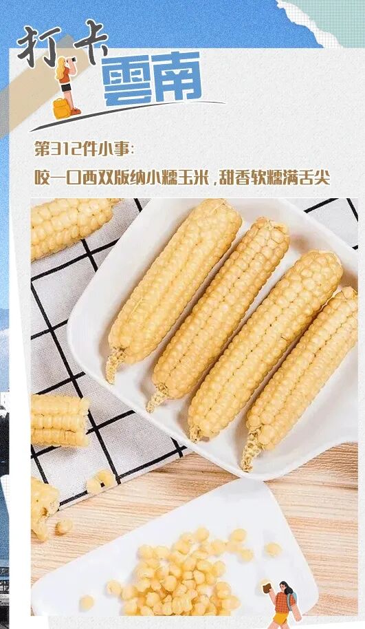 在西双版纳的街头巷尾、农贸市场,随处可见一锅锅煮得晶莹剔透的小糯玉米,买上一根,轻轻咬下,水润透亮的玉米粒在口中绽放,口感软糯Q弹,清甜的滋味萦绕舌尖,一种幸福的滋味油然而生。