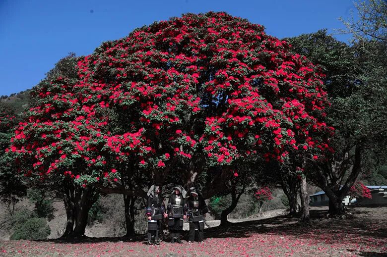 漫山红遍花似海,万千宾客慕名来。二、三月份走进永德大雪山生态旅游区,只见成片的杜鹃花染红山间,给人以“万山红遍,层林尽染”的既视感。走近细观,茂盛的树枝上开满红火的花朵,那绽开的花瓣娇艳得就像绸缎,弯曲的轮廓犹如仙女裙带。