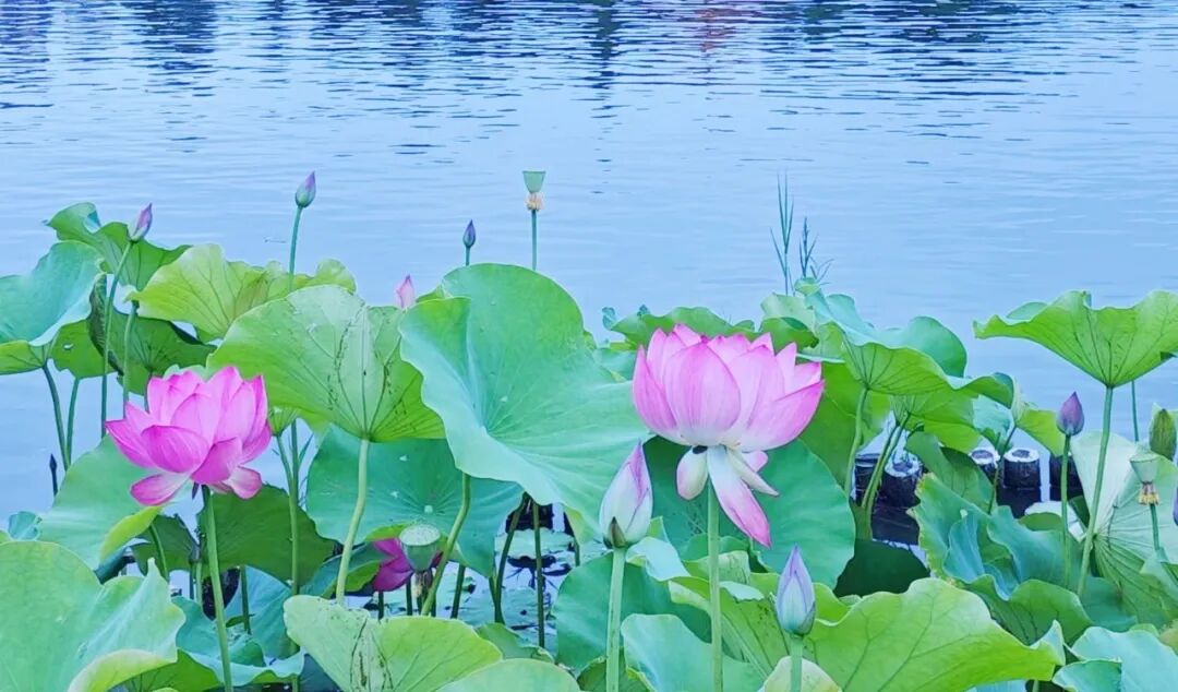 每年夏天,荷花池里生机勃勃、荷香四溢,各类荷花在微风中轻轻摇曳着小脑袋,浓绿衬托之下尤显娇俏。